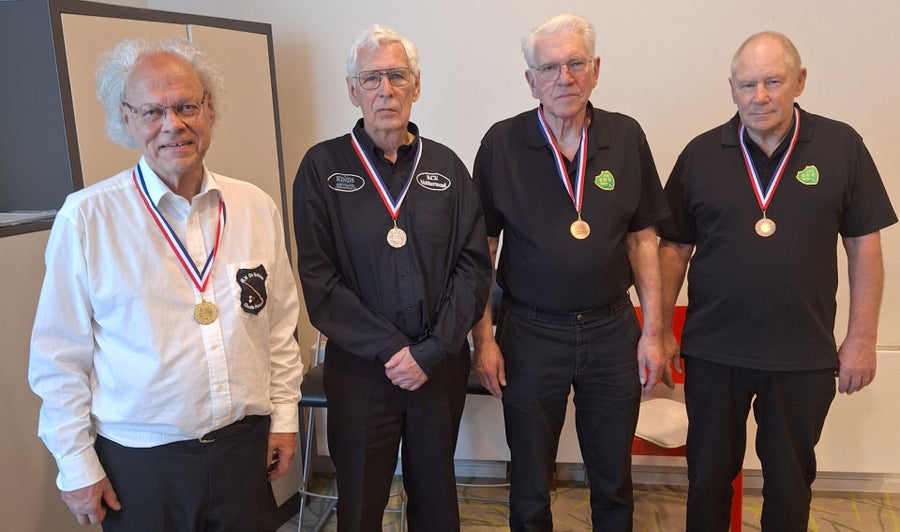Finalisten PK District finale bandstoten 1e klas, van links naar rechts 1e Hans Mulder, 2e plaats cor Elzenaar, 3e plaats Jaap Middel, 4e plaats Lucas heuving.