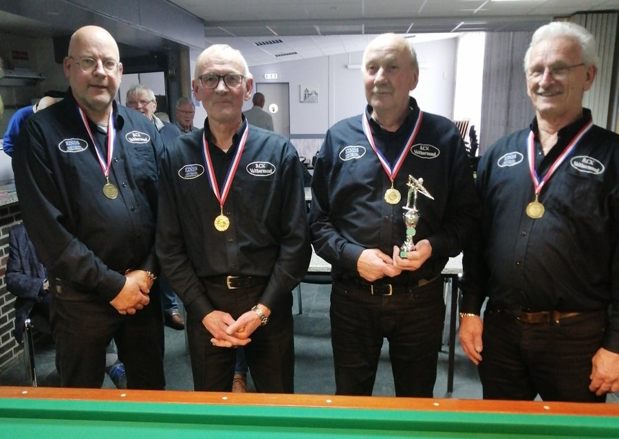 District Finalisten PK 3 banden 2e klas, van links naar rechts nr 1 t/m 4 Bertus Smit, gino goossens, pieter v d poel, lucas heuvingh